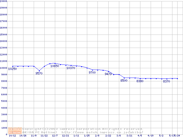 | [↓次グラフ]: | Barracuda 5400.1 (5400rpm,UltraATA/100,2MB,FDB)の最安値推移 |