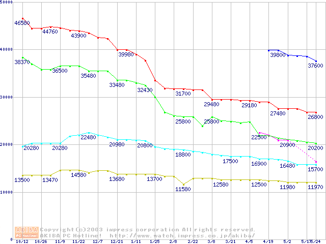 | [↓次グラフ]: | WD Caviar (7200rpm,UltraATA/100,2MB)の最安値推移 |