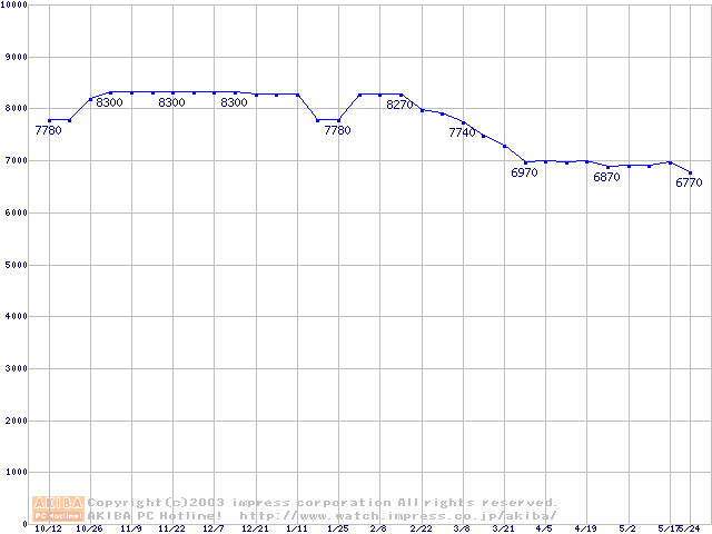 | [↓次グラフ]: | SpinPoint V80 (5400rpm,UltraATA/133,2MB)の最安値推移 |