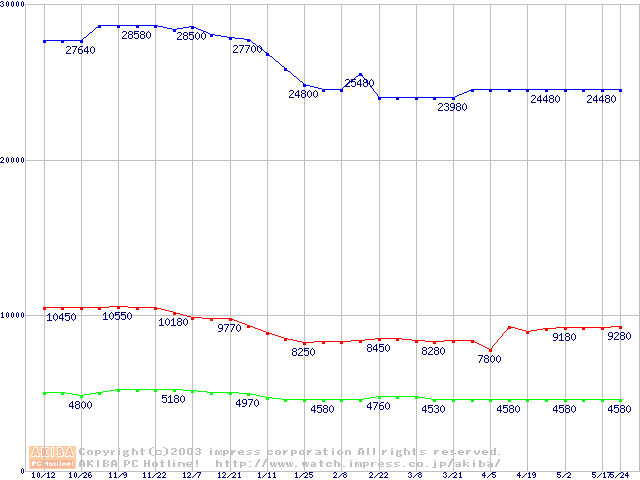 | [↓次グラフ]: | PC800-40 DRDRAM RIMM ECC対応の最安値推移 |