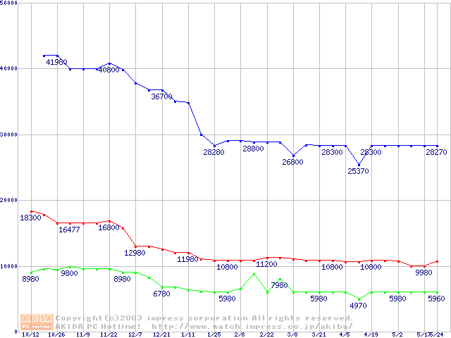 | [↓次グラフ]: | PC1066 DRDRAM RIMM4200(32bit)の最安値推移 |