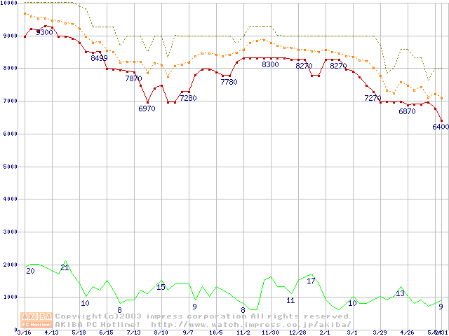 WD Protege (5400rpm,UltraATA/100)の最安値推移