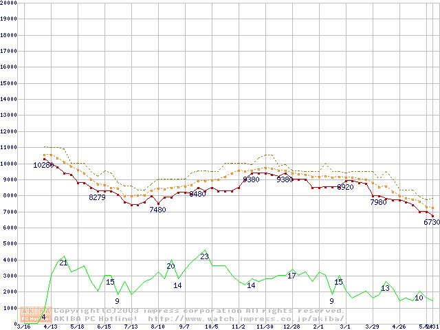 Deskstar 120GXP (7200rpm,2MB,UltraATA/100,BB)の最安値推移
