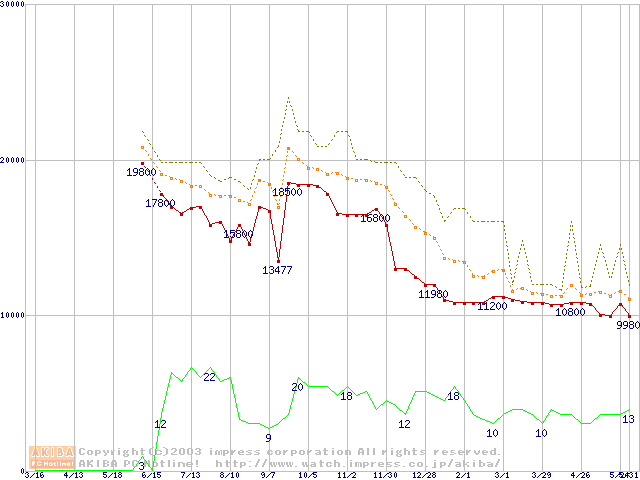 メモリ主要製品(最安値5千円~1万円未満)の最安値推移
