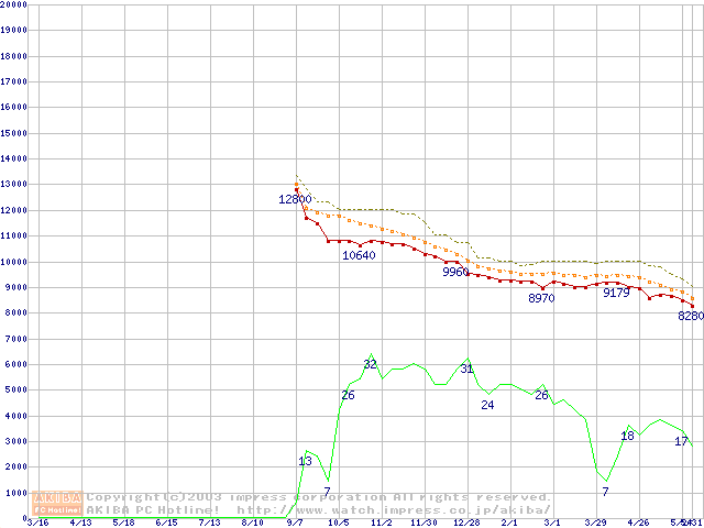DiamondMax Plus 9 (7200rpm,2MB,UltraATA/133,FDB)の最安値推移