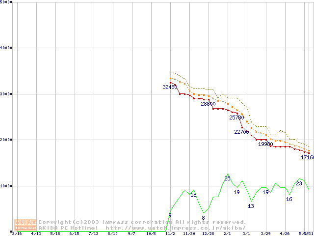 DiamondMax Plus 9 (7200rpm,8MB,UltraATA/133,FDB)の最安値推移