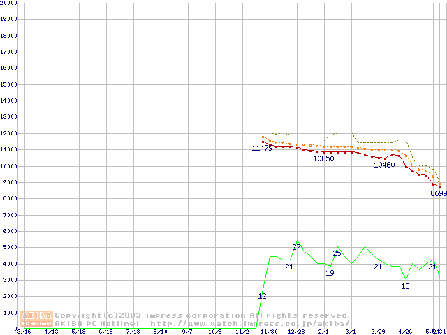 Socket 478 (micro-PGA,FSB 400MHz,L2 128KB,Northwood)の最安値推移