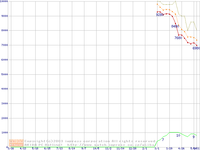 | Athlon XP 2000+ (1.67GHz) バルク(Thoroughbred)の価格推移 |