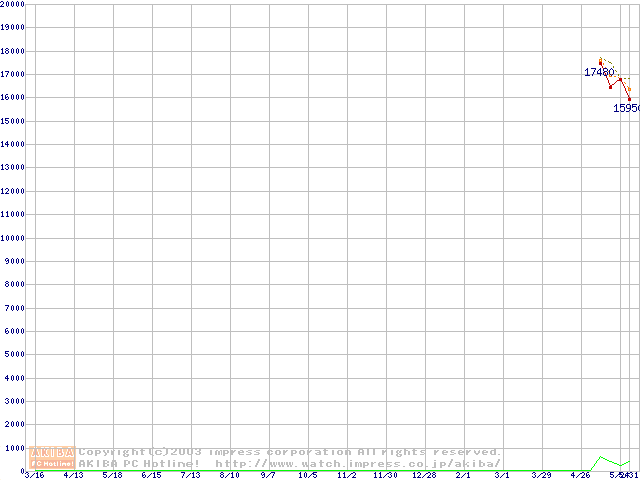 WD Caviar (5400rpm,UltraATA/100,2MB)の最安値推移