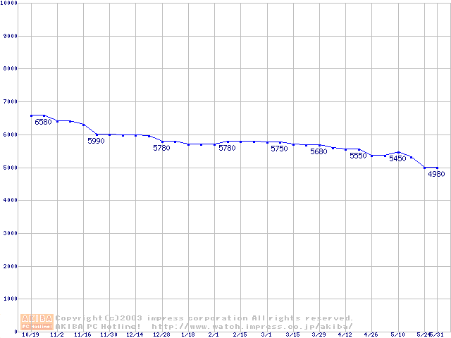 | [↓次グラフ]: | Socket A (PGA,FSB 200MHz,L2 256KB,Thunderbird)の最安値推移 |