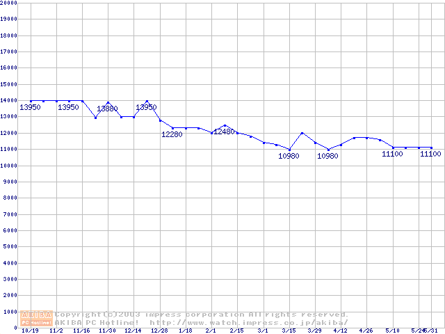 | [↓次グラフ]: | Socket 370 (FC-PGA2,FSB 100MHz,L2 256KB,Tualatin)の最安値推移 |