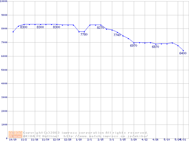 | [↑前グラフ]: | WD Caviar (5400rpm,UltraATA/100,2MB)の最安値推移 |