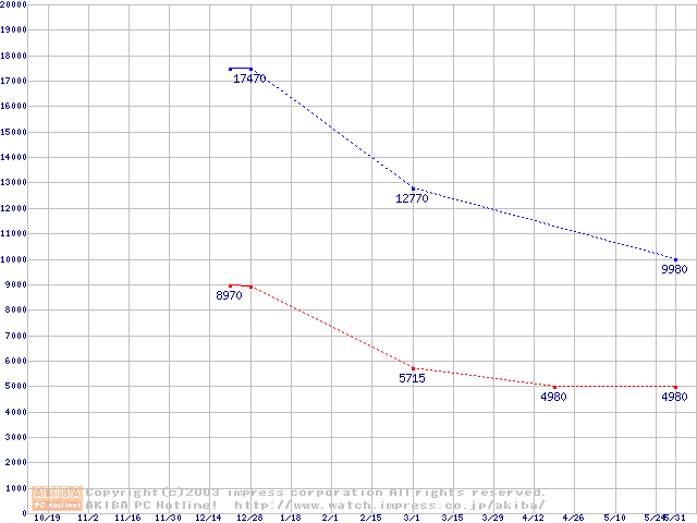 | [↓次グラフ]: | PC133 SDRAM DIMM CasLatency=3の最安値推移 |