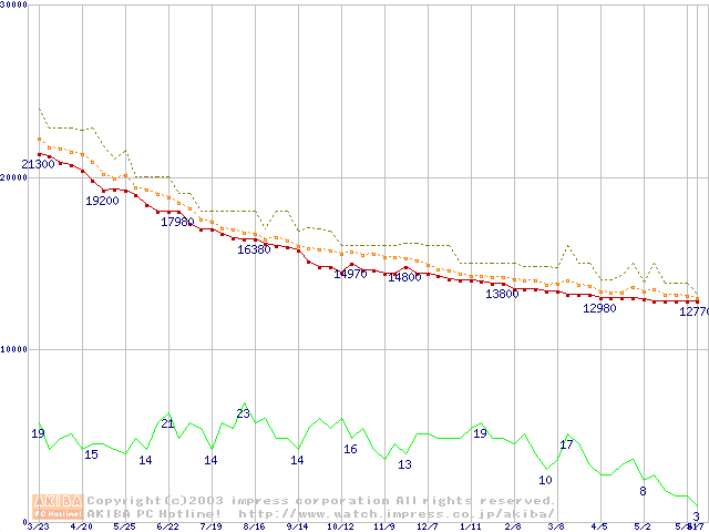 MKシリーズ (9.5mm,4200rpm,2MB,FDB,20GB/Platter)の最安値推移