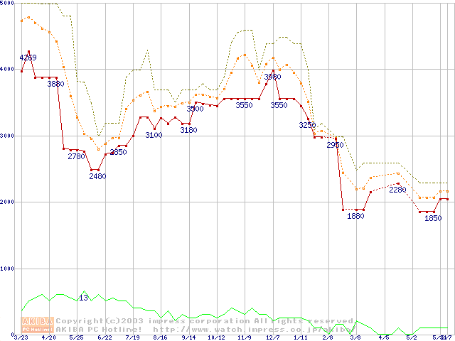 PC2100(DDR266) DDR SDRAM DIMM(CL 2.0)の最安値推移