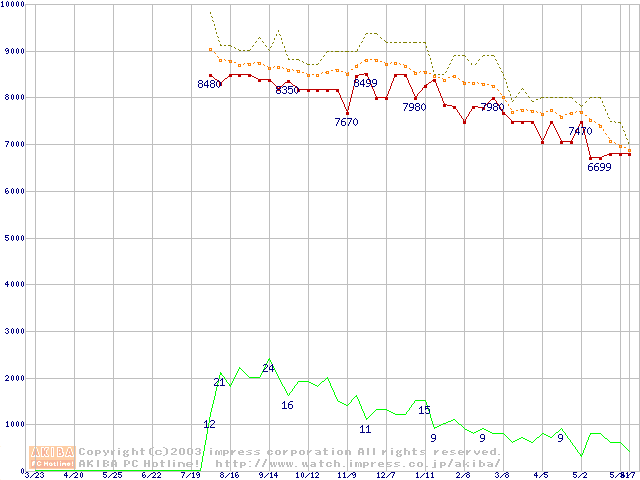 Fireball 3 (5400rpm,UltraATA/133,2MB,BB)の最安値推移