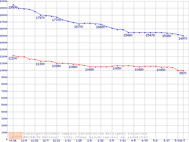 | [↑前グラフ]: | Jupitor (7200rpm,2MB,FDB,UltraATA/100)の最安値推移 |