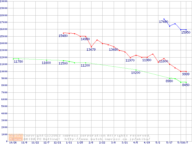 | [↑前グラフ]: | WD Caviar (7200rpm,UltraATA/100,2MB)の最安値推移 |