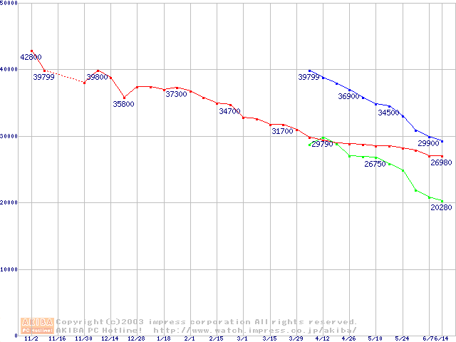 | [↓次グラフ]: | 2.5インチHDD主要製品(最安値3万円以上)の最安値推移 |