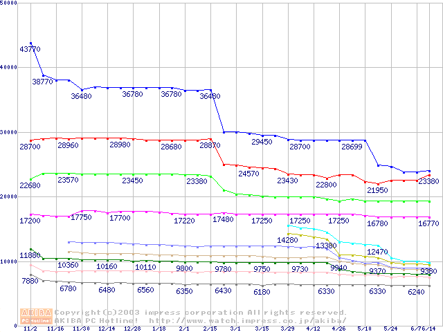 | [↓次グラフ]: | Socket 370・FSB 133MHzの最安値推移 |