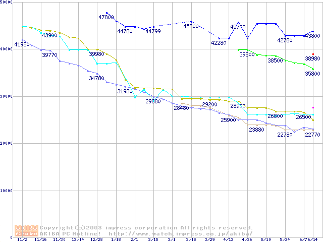 メモリ主要製品の最安値推移
