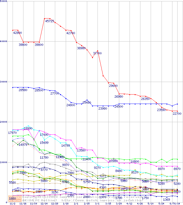 メモリ主要製品の最安値推移
