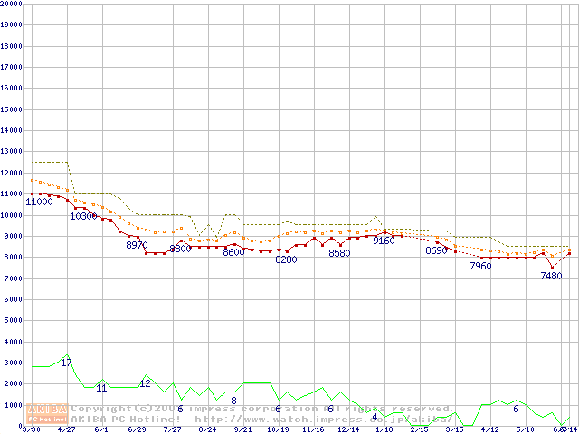 WD Caviar (7200rpm,UltraATA/100,20GB/Platter)の最安値推移