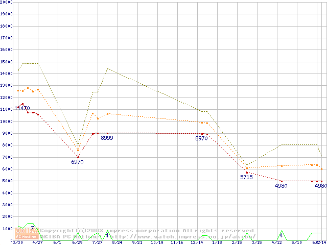 PC2100(DDR266) DDR SDRAM DIMM ECC対応の最安値推移