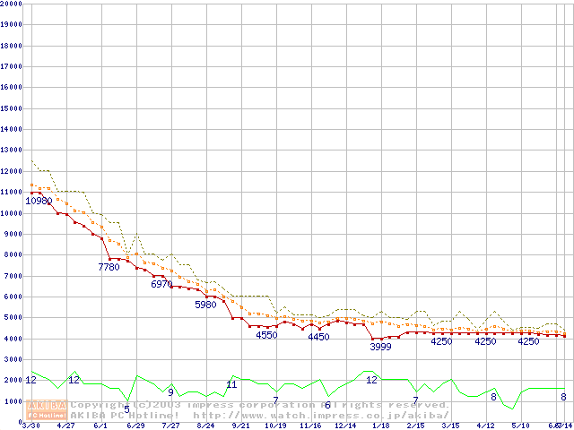 Socket A (PGA,FSB 200MHz,L2 64KB,Morgan)の最安値推移