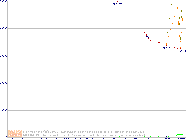 PC2700(DDR333) DDR SDRAM DIMM ECC対応 Registeredタイプの最安値推移