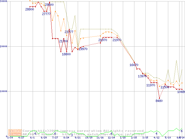 PC2700(DDR333) DDR SDRAM DIMM ECC対応 Registeredタイプの最安値推移