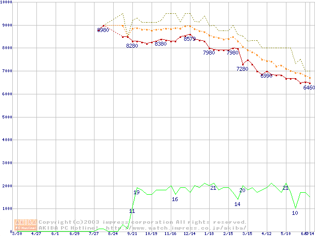 Fireball 3 (5400rpm,UltraATA/133,2MB,FDB)の最安値推移