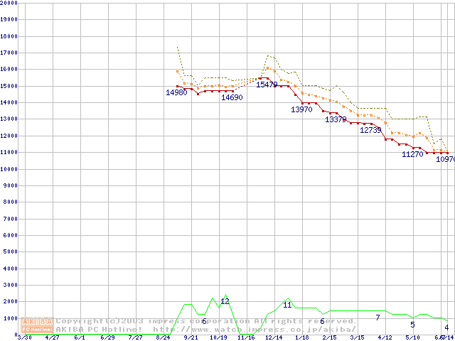 SpinPoint V60 (5400rpm,UltraATA/100,2MB)の最安値推移