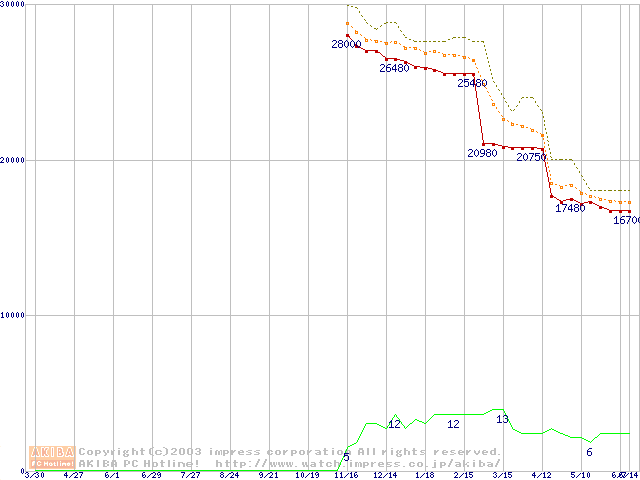 Socket A (OPGA,FSB 266MHz,L2 256KB,Thoroughbred)の最安値推移