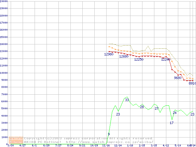 Socket 478 (micro-PGA,FSB 400MHz,L2 128KB,Northwood)の最安値推移