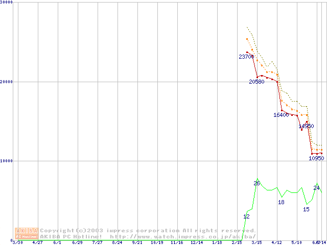 Socket A (OPGA,FSB 333MHz,L2 512KB,Barton)の最安値推移