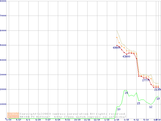 Socket A (OPGA,FSB 333MHz,L2 512KB,Barton)の最安値推移