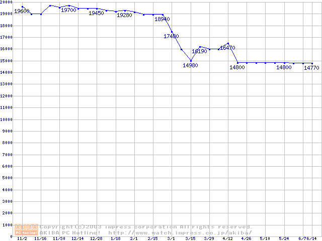 | [↑前グラフ]: | Socket A (OPGA,FSB 266MHz,L2 256KB,Thoroughbred)の最安値推移 |