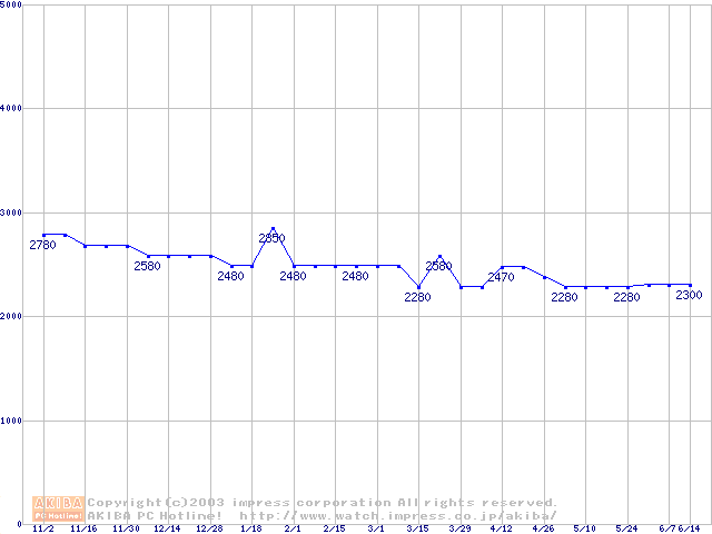 | [↓次グラフ]: | Socket 370 (PGA,FSB 133MHz,L2 64KB,Nehemiah)の最安値推移 |
