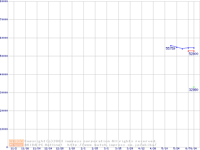 | [↓次グラフ]: | Socket A (OPGA,FSB 333MHz,L2 512KB,Barton)の最安値推移 |