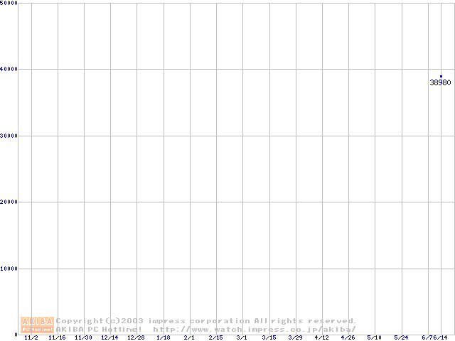 | [↑前グラフ]: | Deskstar 120GXP (7200rpm,2MB,UltraATA/100,BB)の最安値推移 |