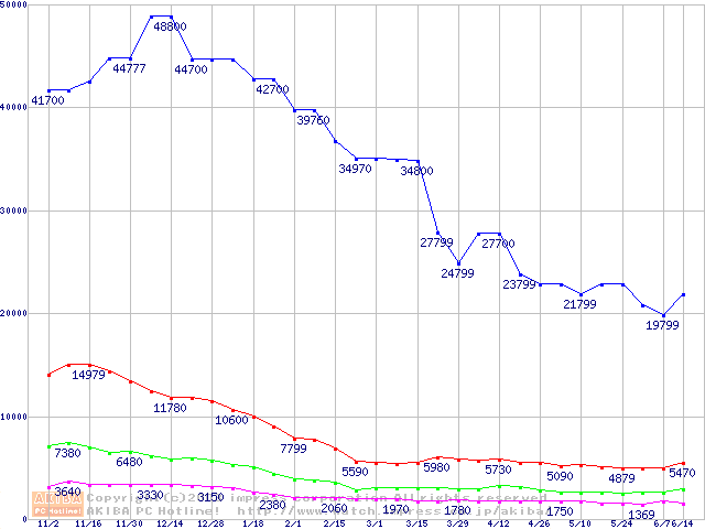 | [↑前グラフ]: | PC3500(DDR433) DDR SDRAM DIMMの最安値推移 |