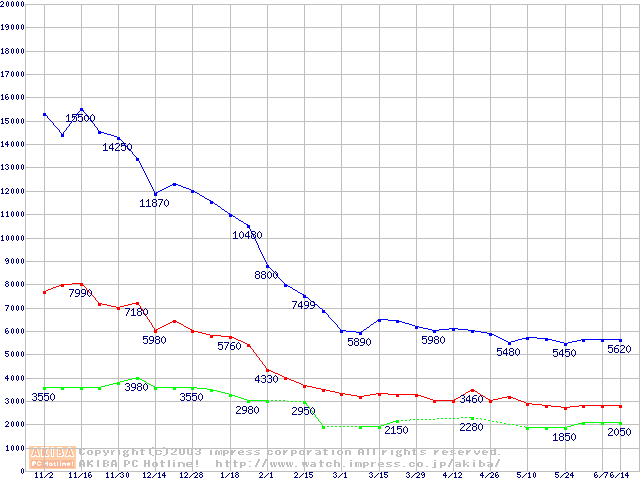 | [↑前グラフ]: | PC2100(DDR266) DDR SDRAM DIMM(CL 2.5)の最安値推移 |