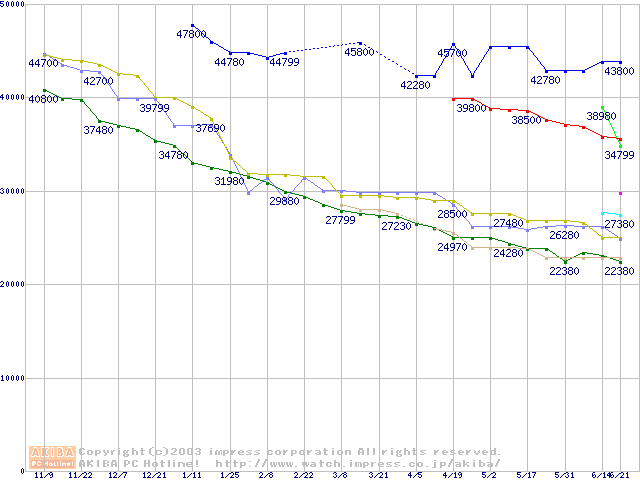 メモリ主要製品の最安値推移
