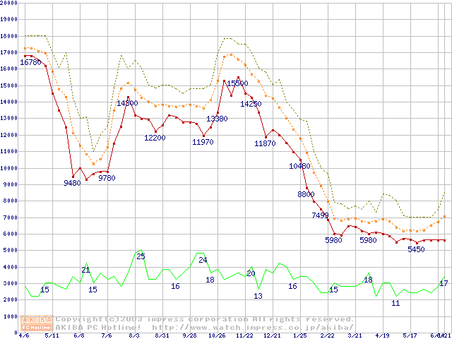 メモリ主要製品の最安値推移