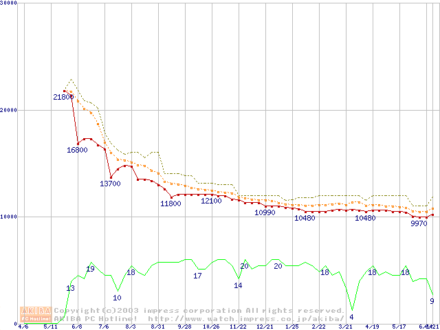 Travelstar 40GNX IC25N020ATCS05 20GBの価格推移