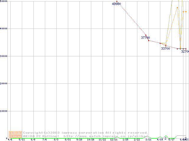 PC2700(DDR333) DDR SDRAM DIMM ECC対応 Registeredタイプの最安値推移
