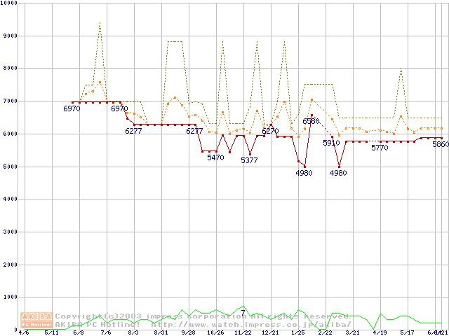 PC800-40 DRDRAM RIMM ECC対応の最安値推移