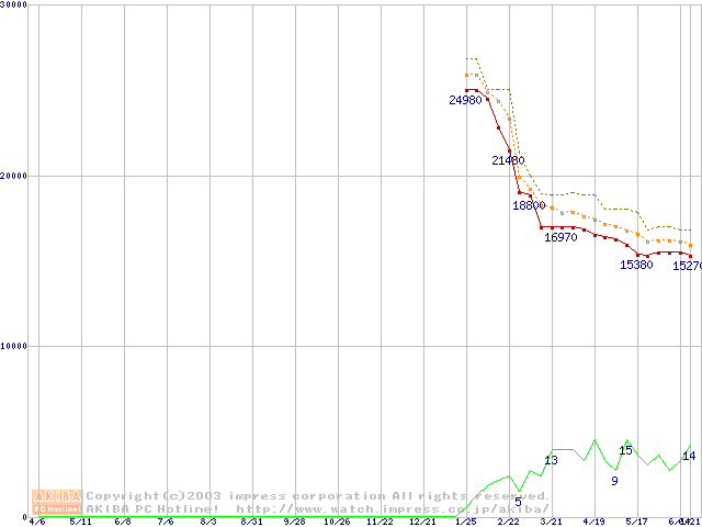 DiamondMax 16 (5400rpm,UltraATA/133,2MB,80GB/Platter,FDB)の最安値推移
