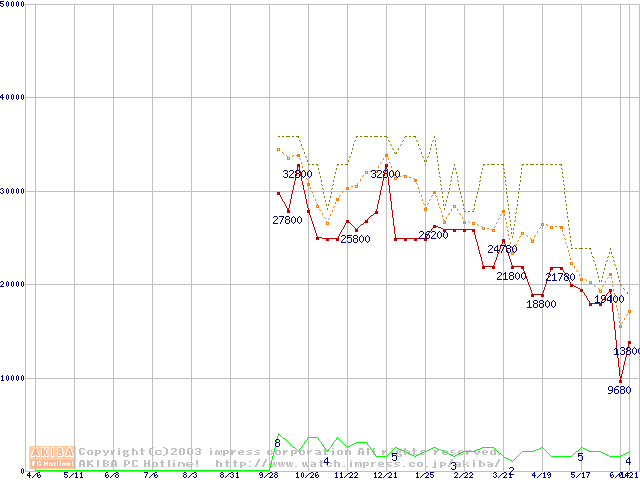 PC3500(DDR433) DDR SDRAM DIMMの最安値推移